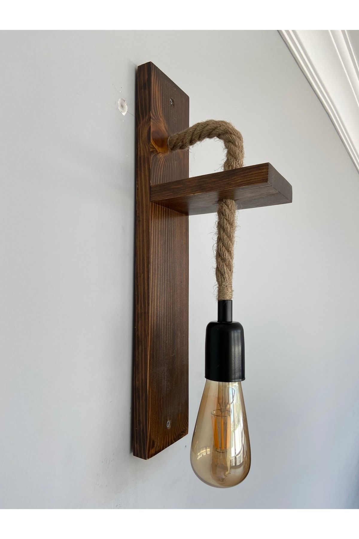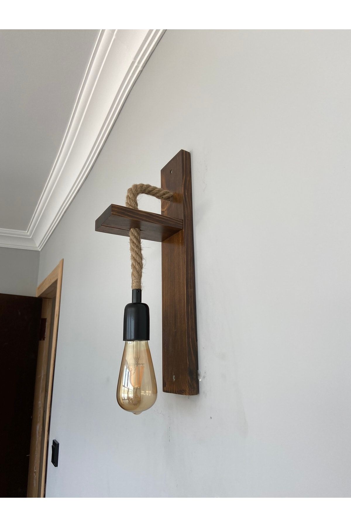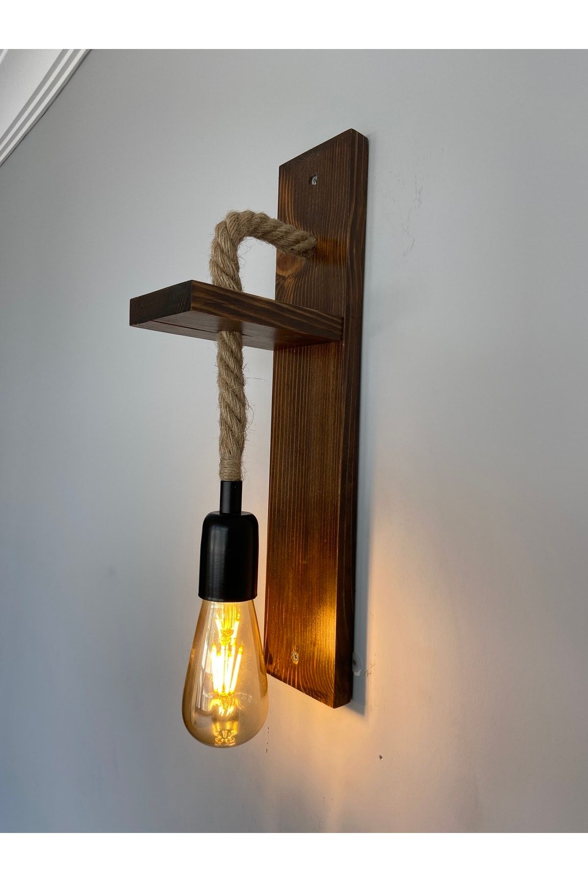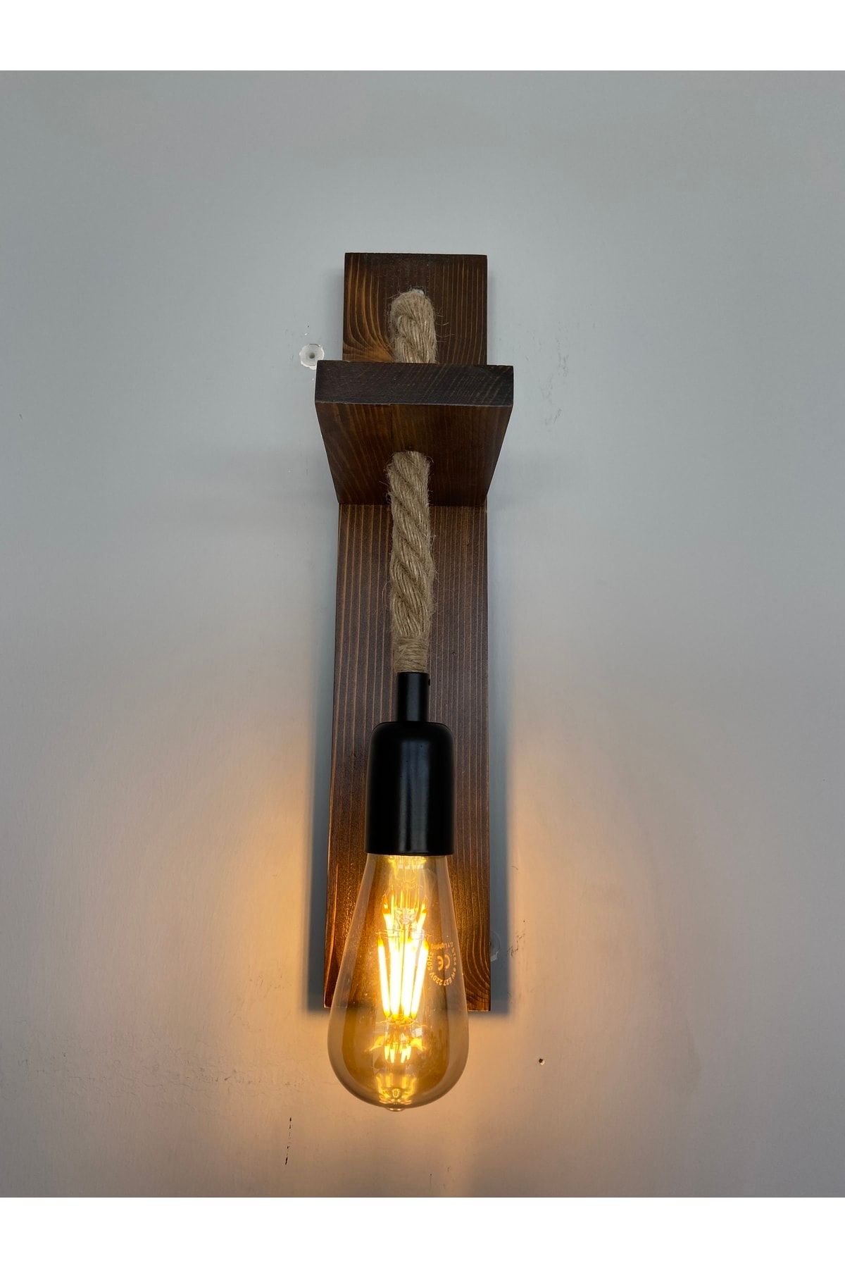 Ahşap Rustik Halat Aplik, Rustik Otantik Duvar Lambası
