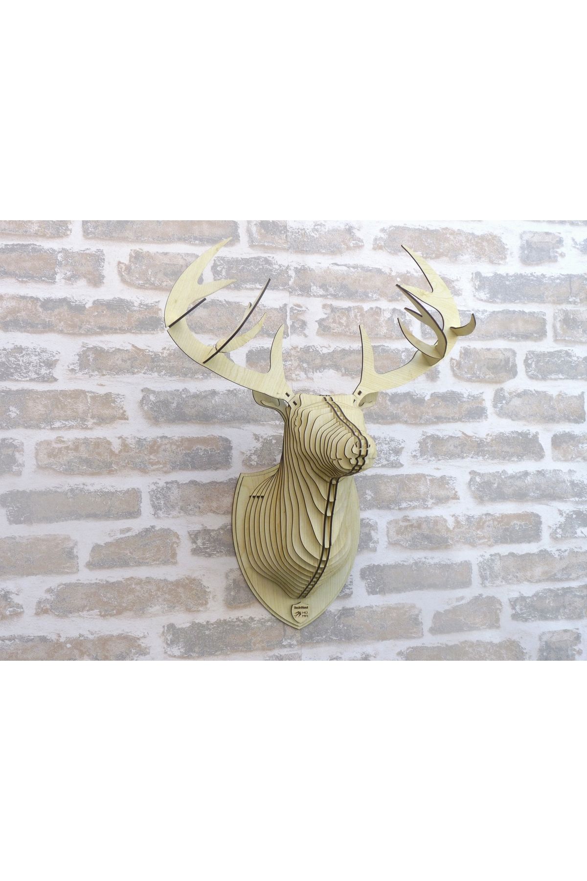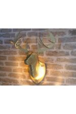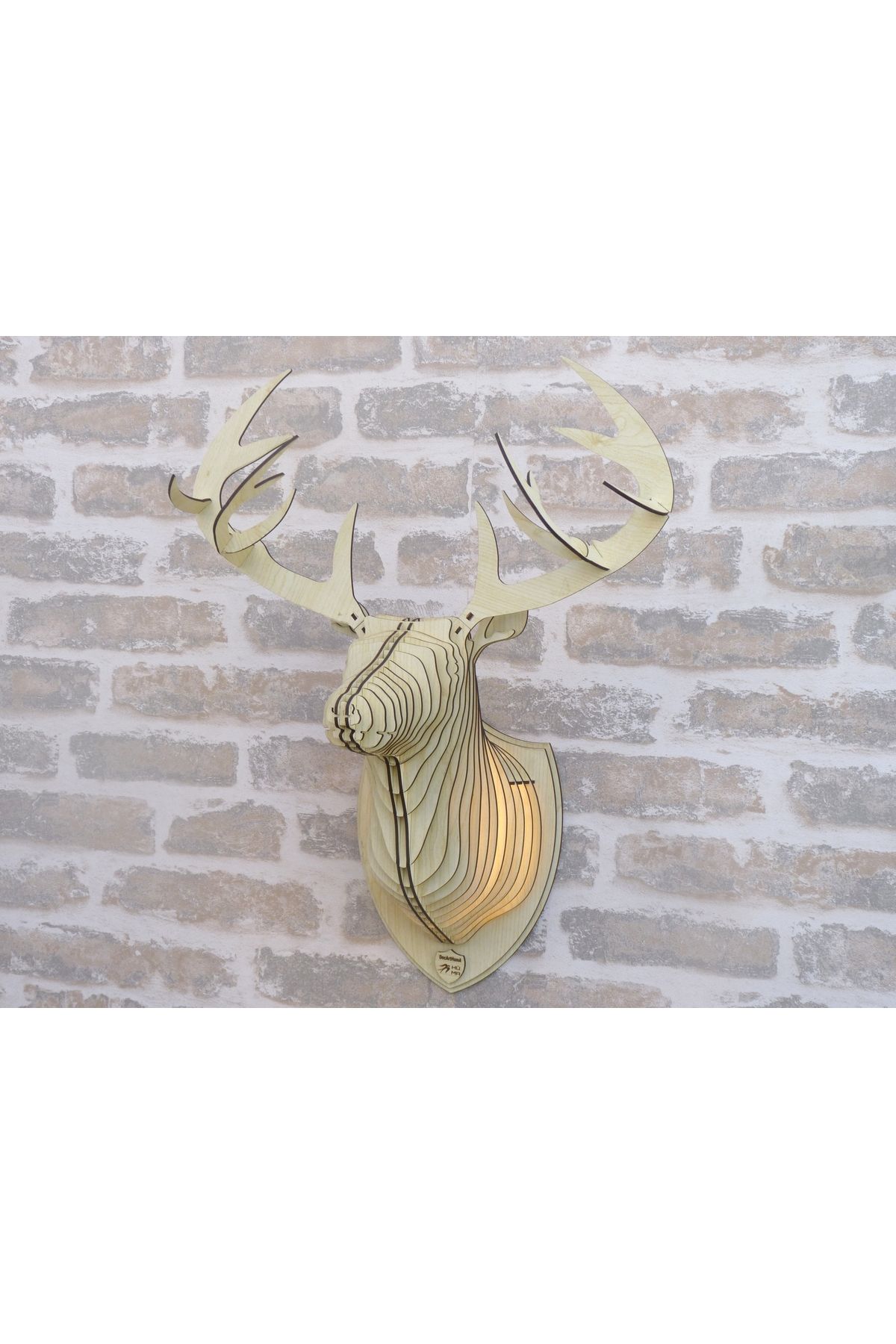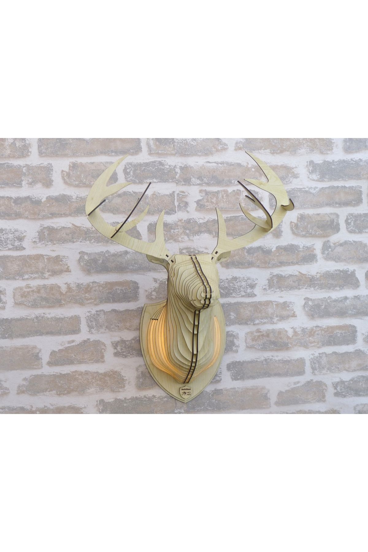 Akça3 Geyik Kafası Tasarımlı Doğal Ahşap Lazer Kesim Rustik Salon Aplik Duvar Dekoru (Ampul Dahil)