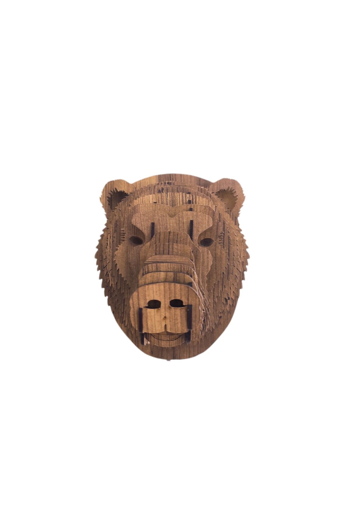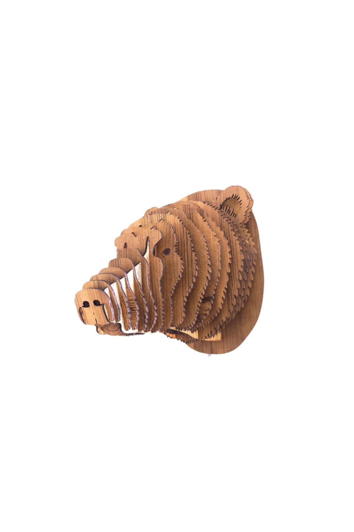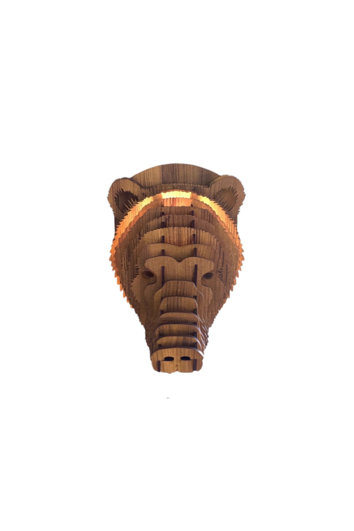 Boz Ayı Kafası Tasarımlı Doğal Ahşap Mdf Lazer Kesim Rustik Salon Aplik Duvar Dekoru (ampul Dahil)