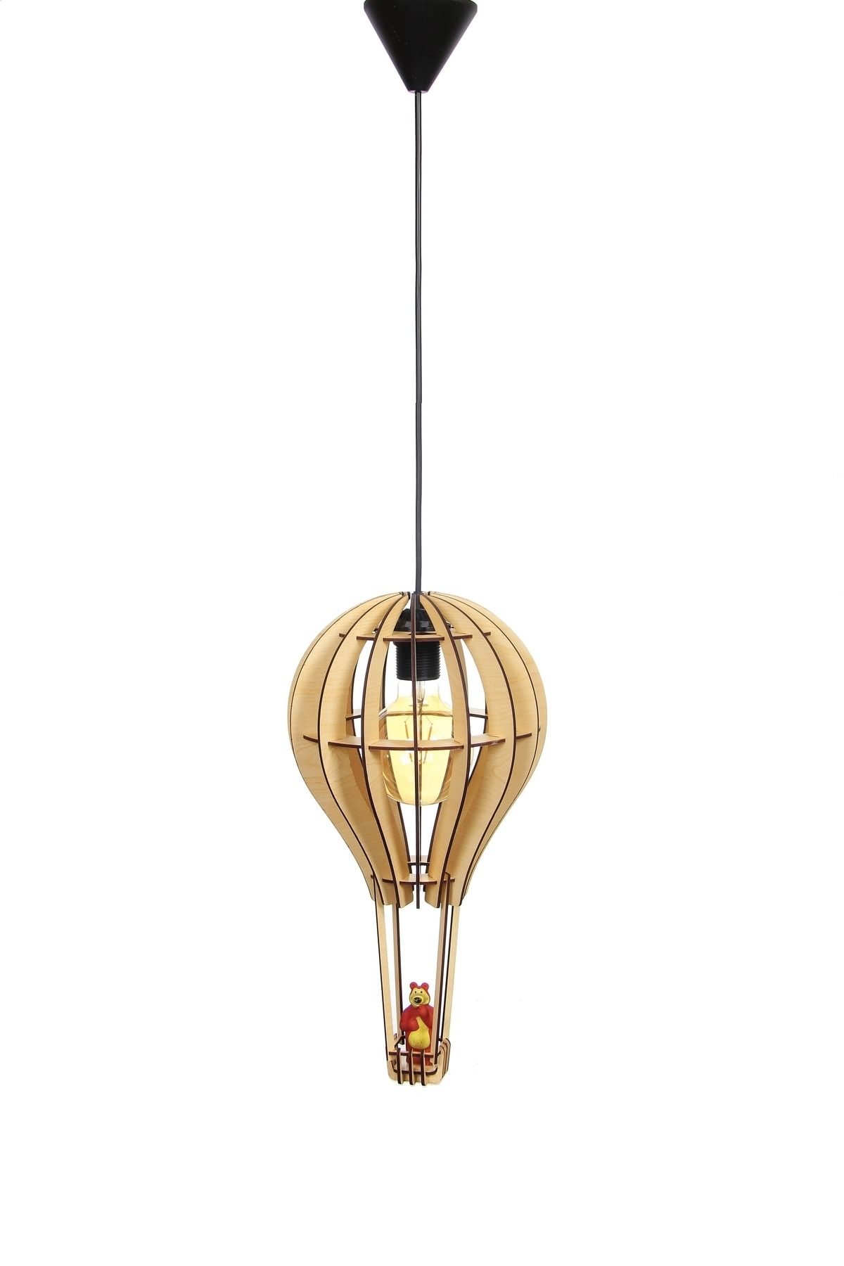 Çocuk Genç Odası Için Doğal Ahşap Mdf 3d Puzzle Lazer Uçan Balon Avize – Biblo Ampul Dahil Değildir