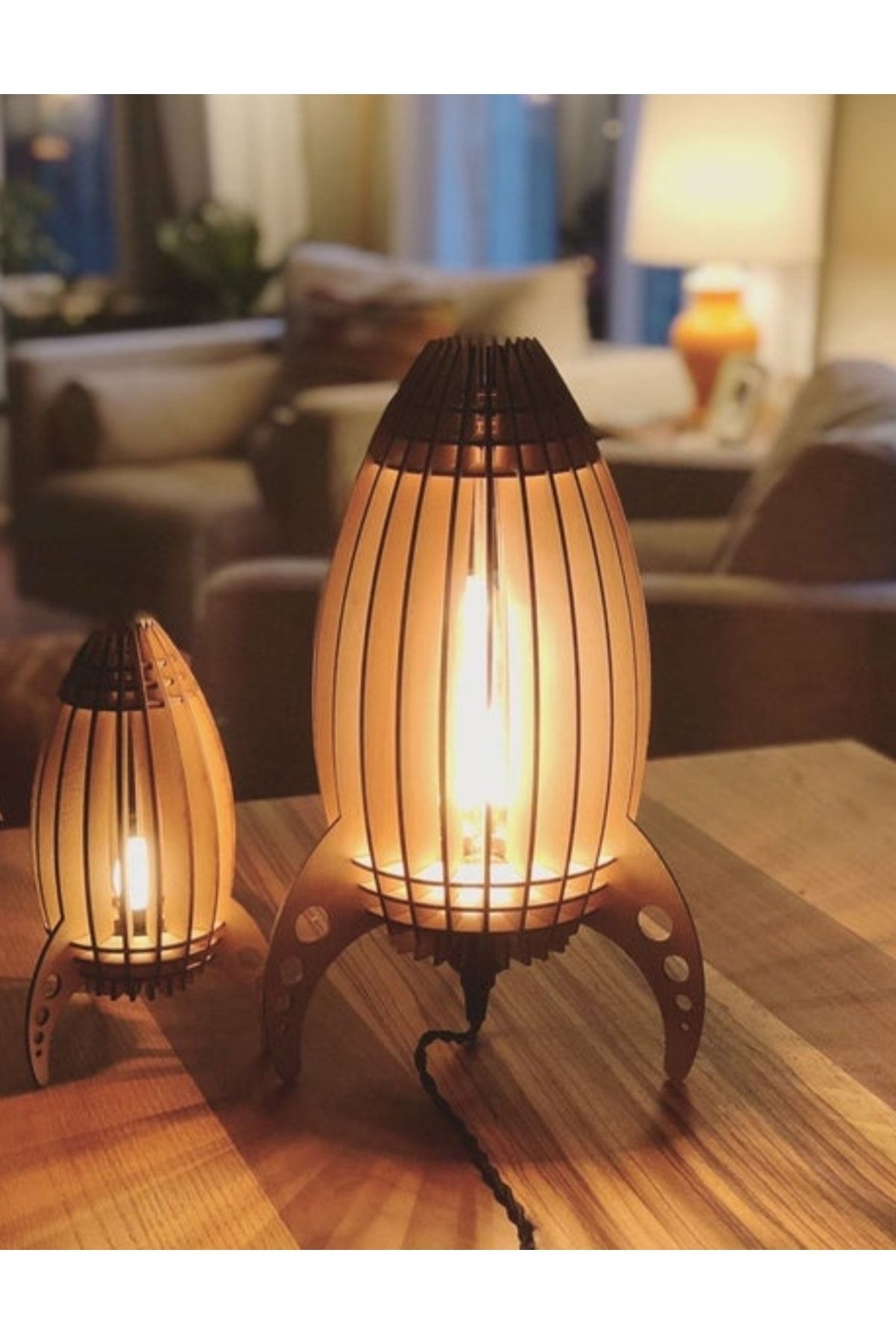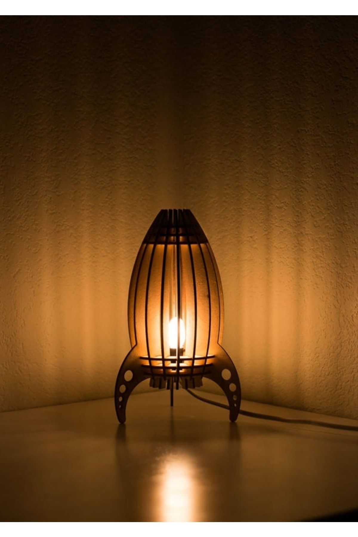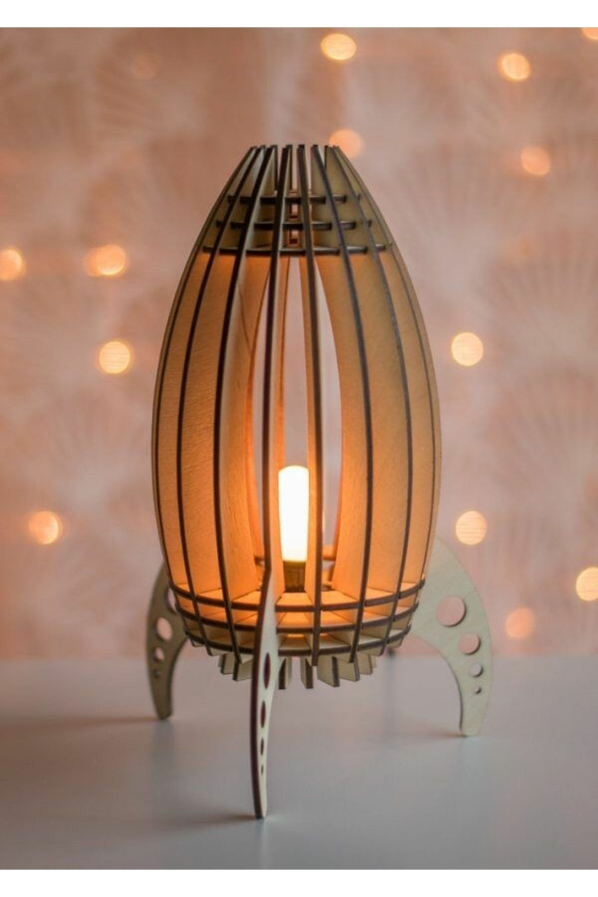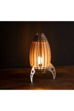 Çocuk Genç Odası Için Doğal Ahşap Mdf Lazer Kesim Füze Roket Abajur – Masa Lambası – Gece Lambası