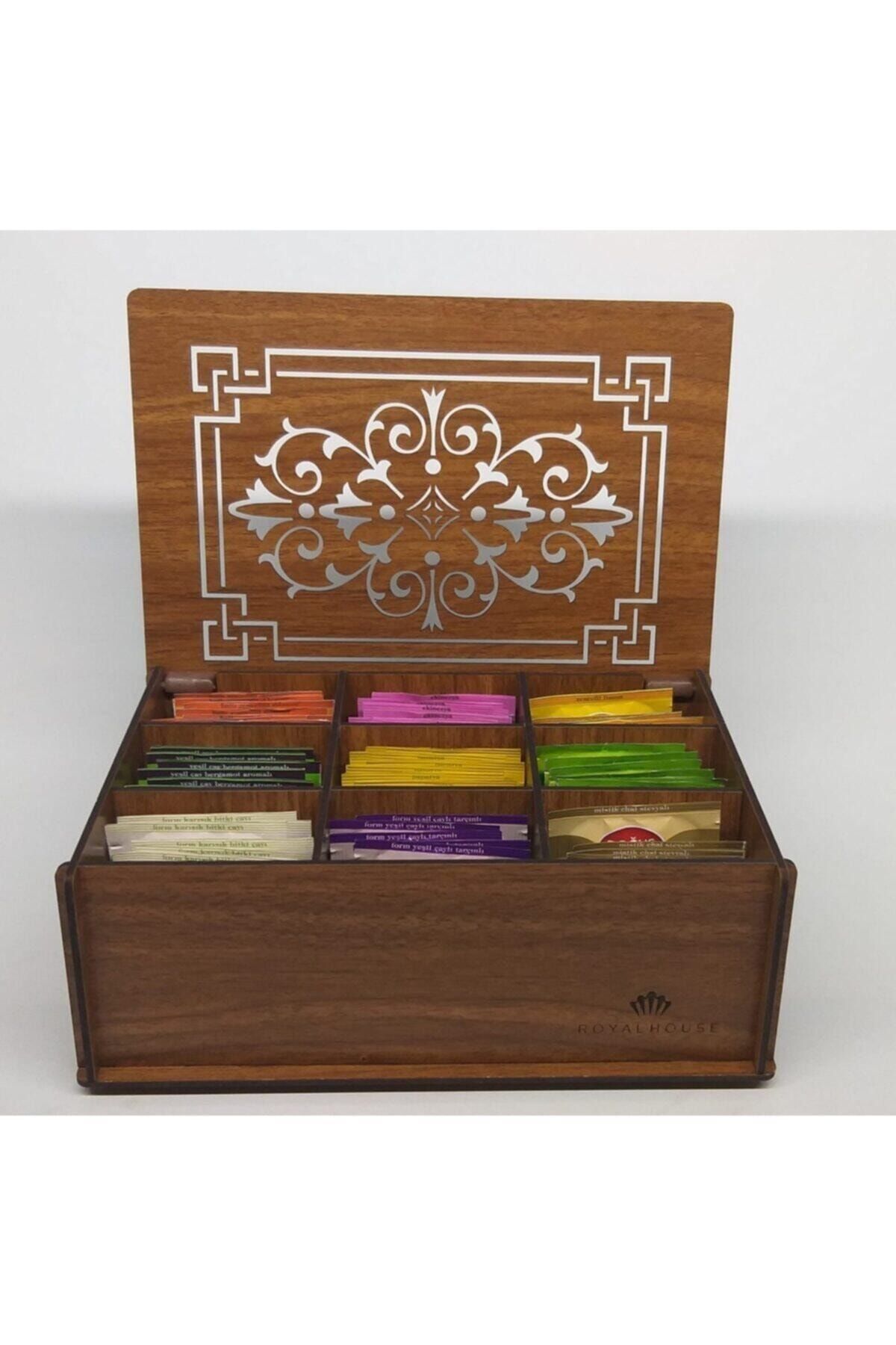 Doğal Ahşap Çay Kutusu 9 Bölmeli Kapaklı Poşet Bitki Çayı Saklama Kabı (tea Box)