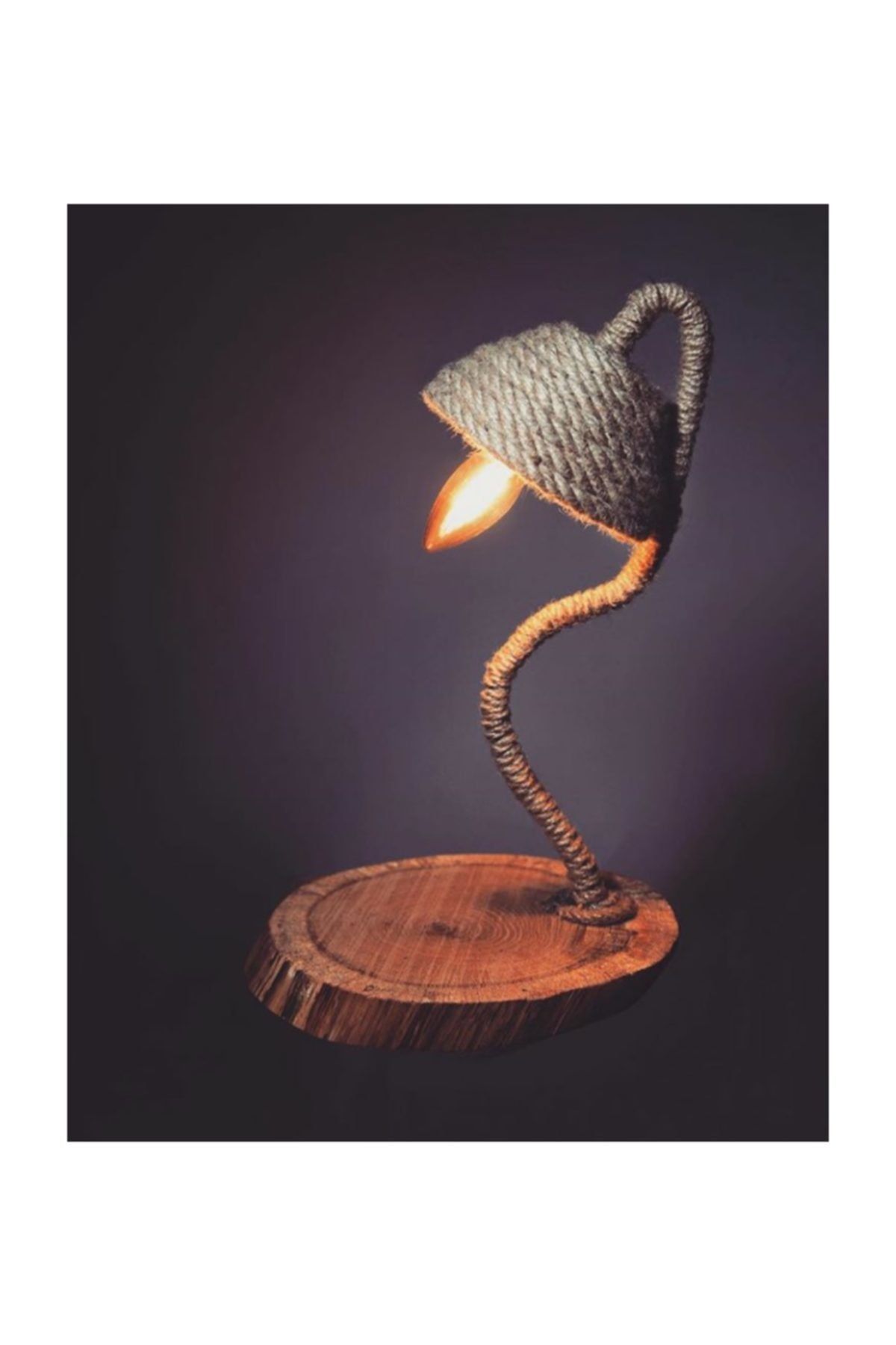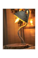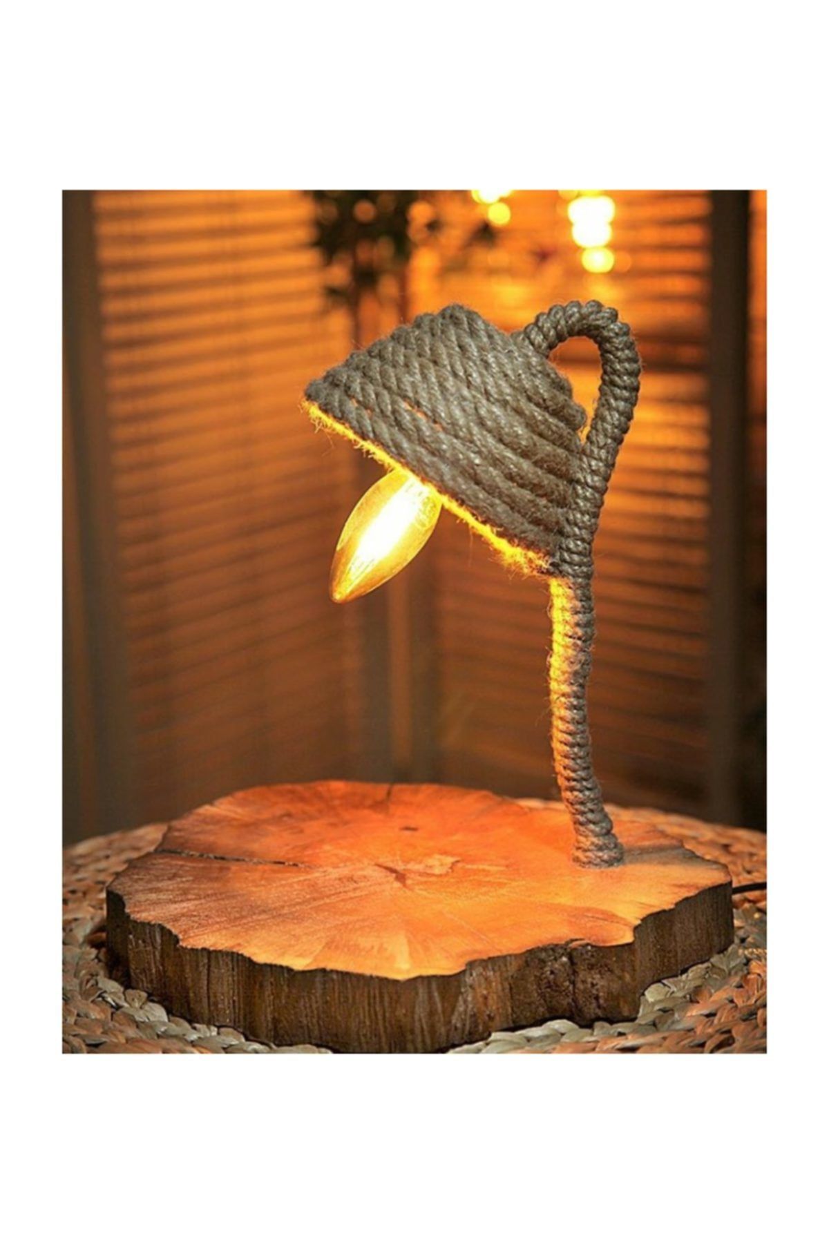 Doğal Ahşap Halatlı Retro Rustik Abajur – Masa Lambası