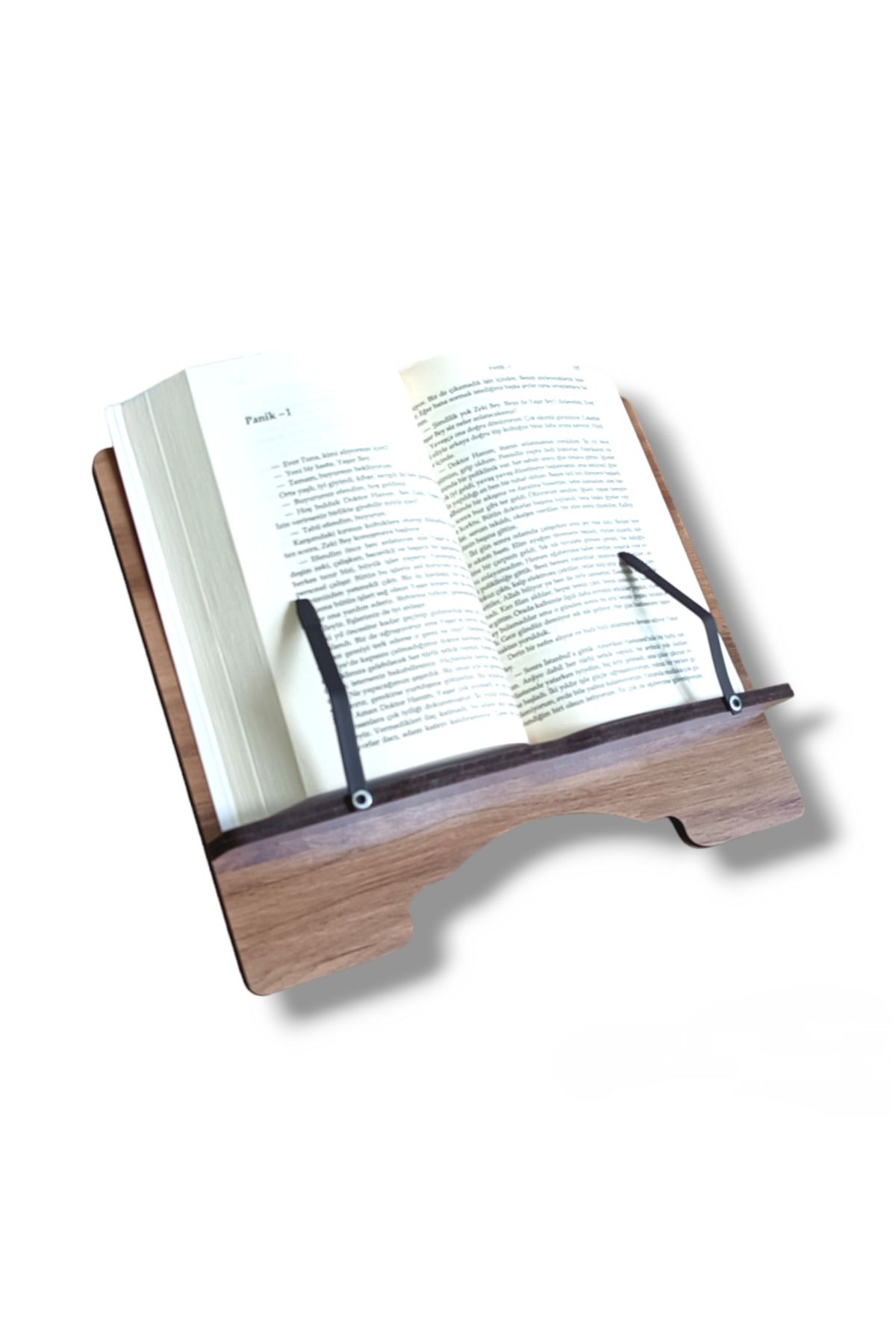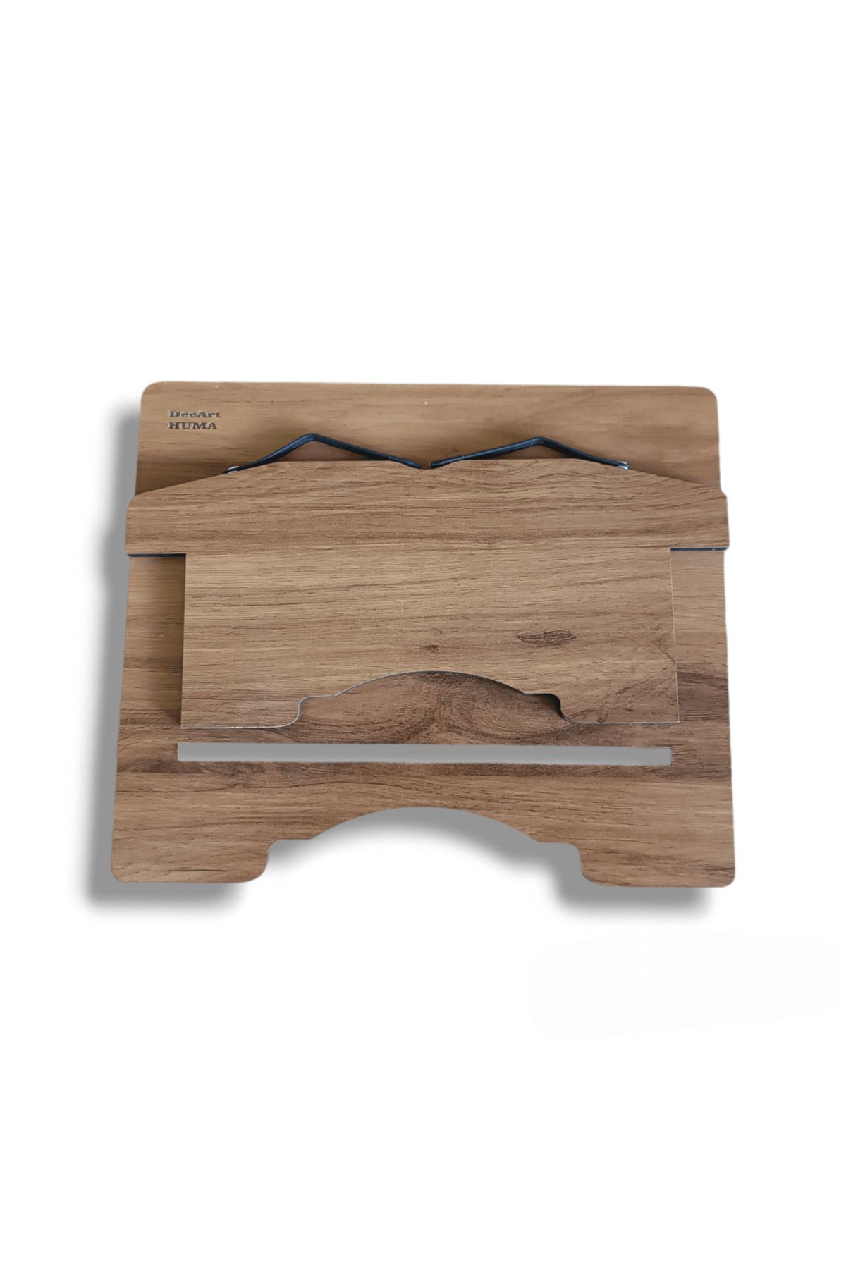 HUMA Ahşap Kitap Okuma ve Tablet Standı Ceviz 29 cm x 22 cm x 3.3 cm boyutlarındadır. ; ; A kalite 8 mm MDF malzemeden üretilmiştir. ; ; %100 yerli üretimdir. ; ; 8 faklı ayarlanabilir açısı ile göz seviyesinde maksimum konforda okuma yapmanızı sağlar. ; ; Katlanabilir ve hafiftir. Katlandığında 3.3 cm kalınlığı ve 1000-1.100 gram ağırlığı ile kolayca taşınabilir. ; ; Dayanıklı ve esnek metal tutacakları sayesinde kitap sayfalarının açılmasını engeller. ; ; Boyun ağrılarınızı azaltır ve omurga sağlığınızı korur. ; ; Sağlam, dayanıklı yapısı ile tüm açılarda kalın, ağır (5kg’a kadar) ve ürün boyutundan büyük kitapları taşır. ; ; Okuma kitapları, ders kitapları, müzik nota defterleri, tabletler, laptoplar ve notebooklar için kullanılabilir. ; ; Yüzeyi kolay temizlenir ve çizilmeye karşı dayanıklıdır. ; ;