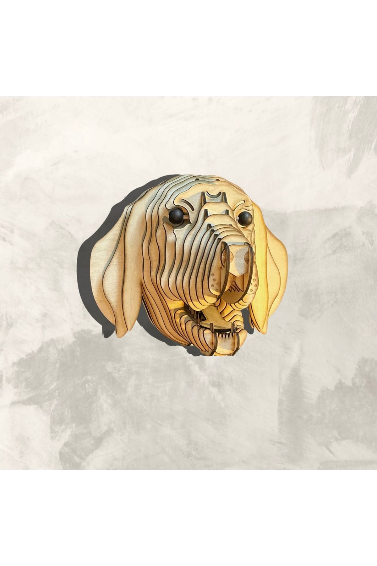 Kelb Köpek Kafası Doğal Ahşap Lazer Kesim Rustik Salon Aplik Duvar Dekoru 3D Tablo Pano (Peri LEDli)