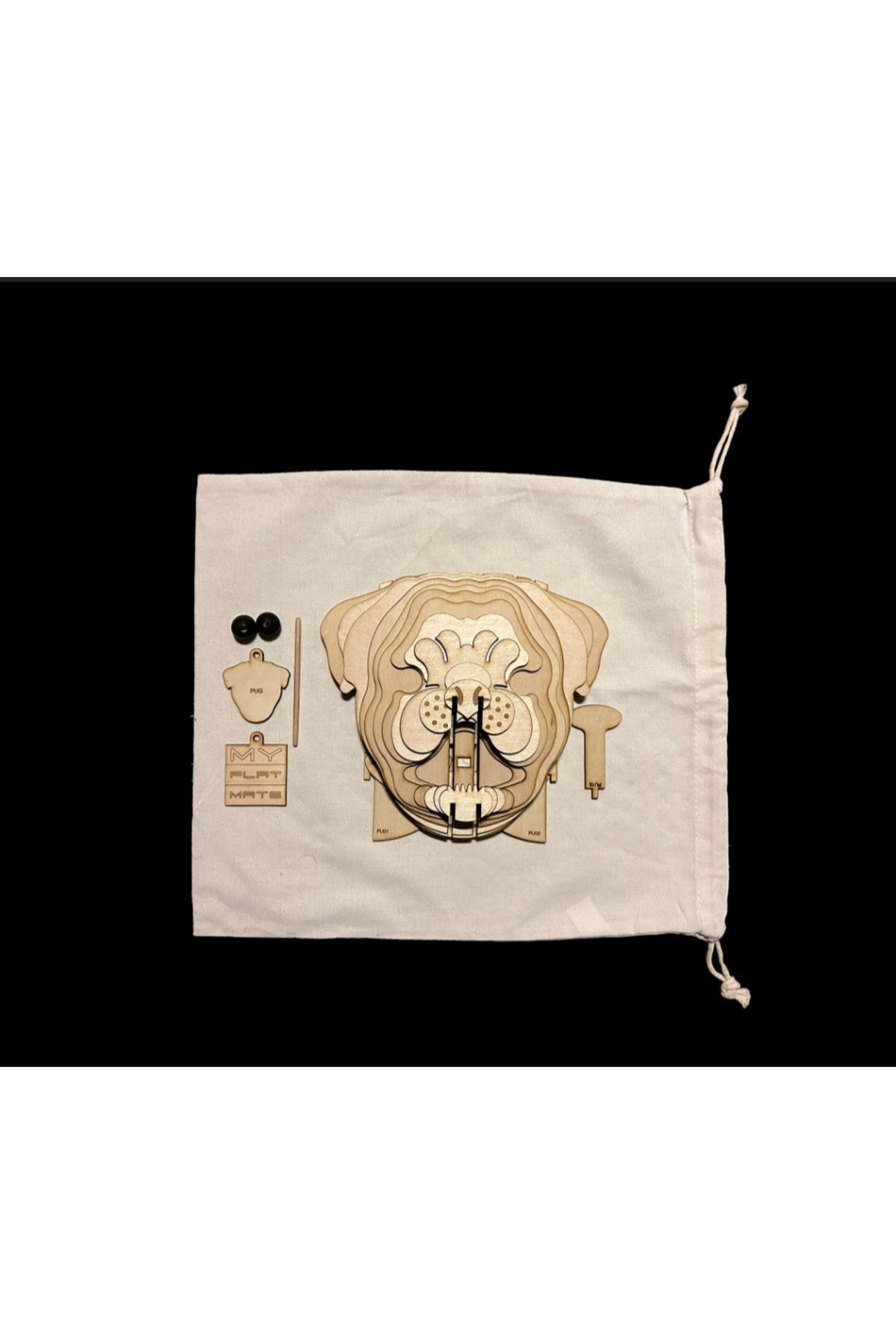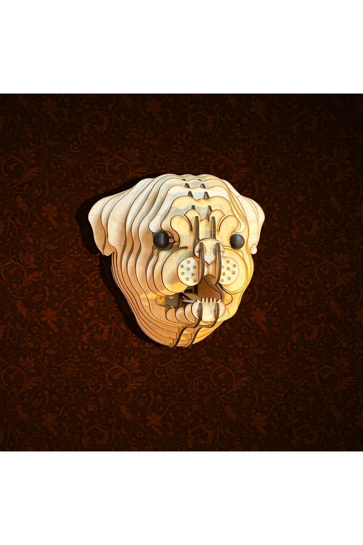 Kelb Köpek Kafası Doğal Ahşap Lazer Kesim Rustik Salon Aplik Duvar Dekoru 3D Tablo Pano (Peri LEDli)
