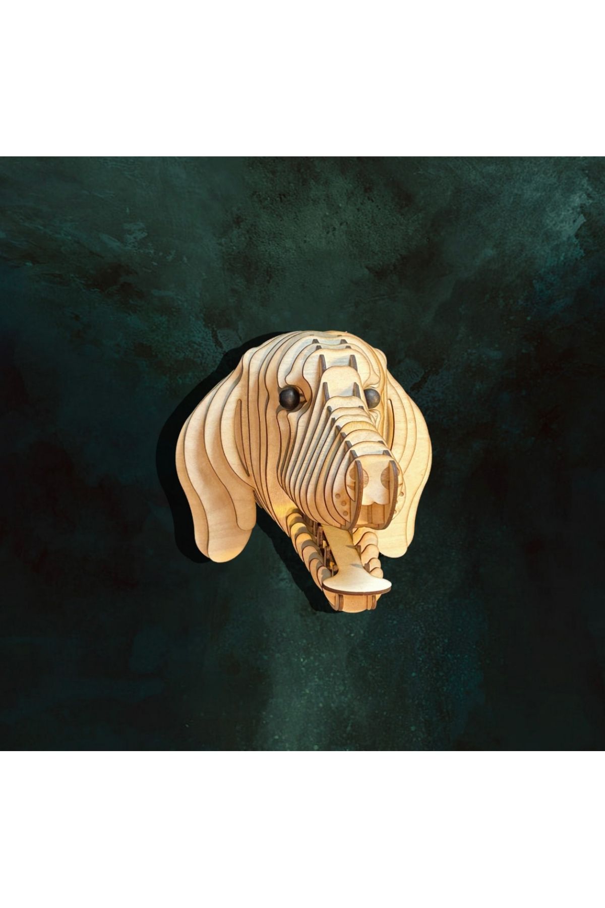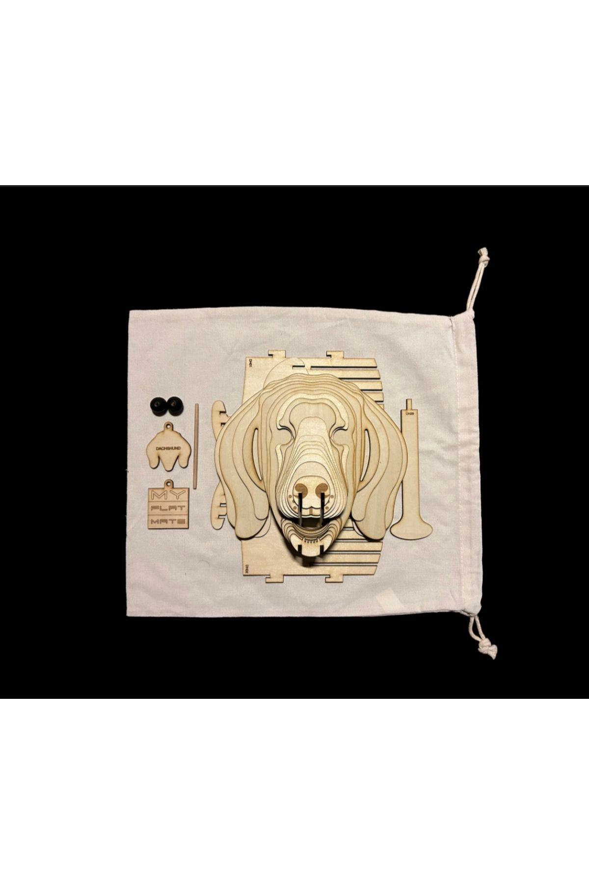 Kelb Köpek Kafası Doğal Ahşap Lazer Kesim Rustik Salon Aplik Duvar Dekoru 3D Tablo Pano (Peri LEDli)