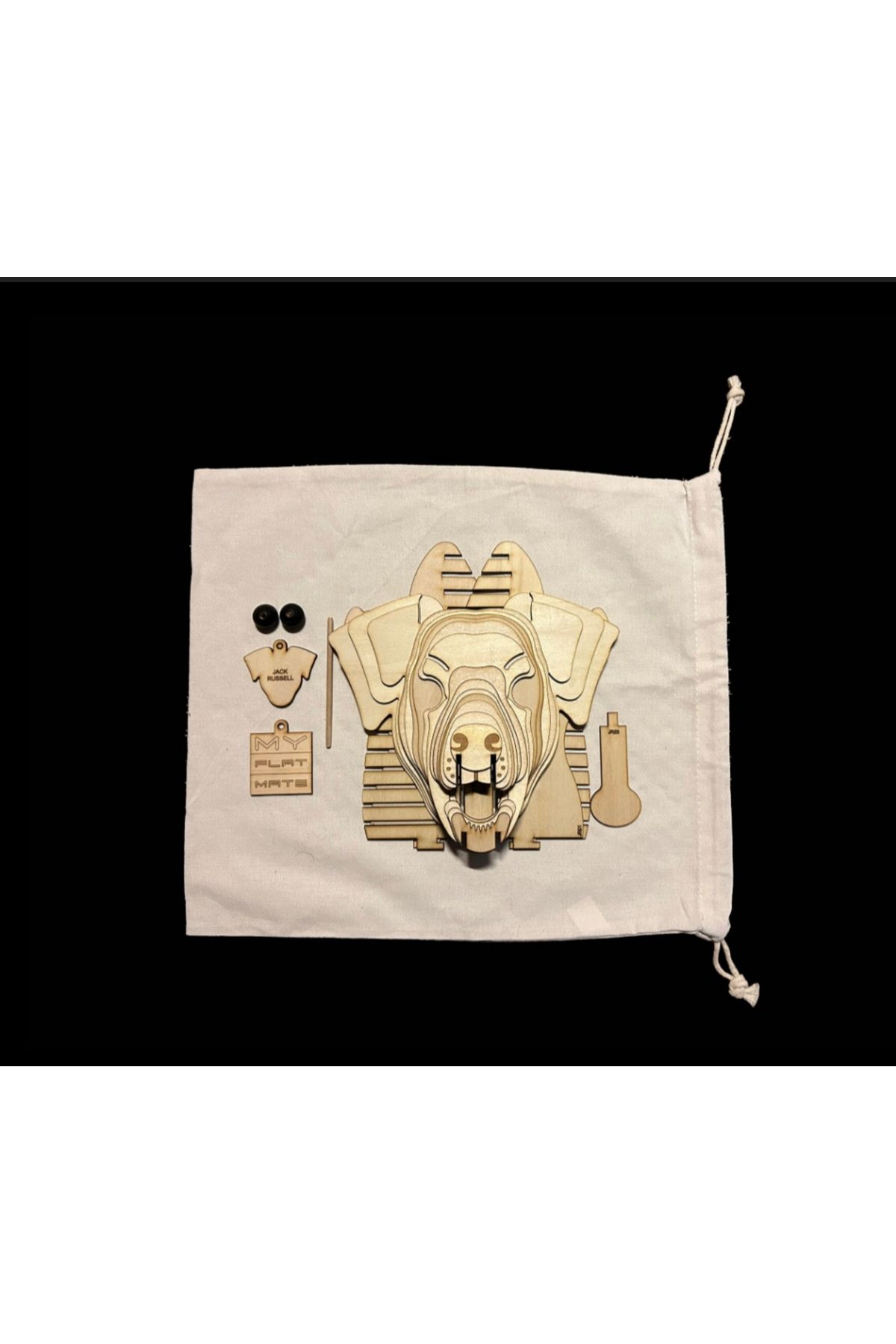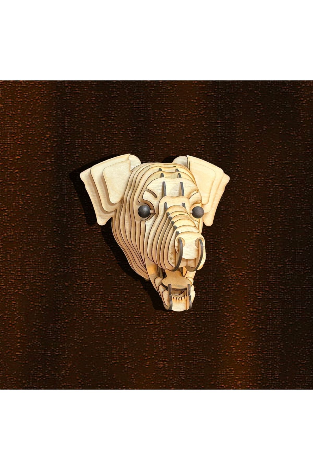 Kelb Köpek Kafası Doğal Ahşap Lazer Kesim Rustik Salon Aplik Duvar Dekoru 3D Tablo Pano (Peri LEDli)