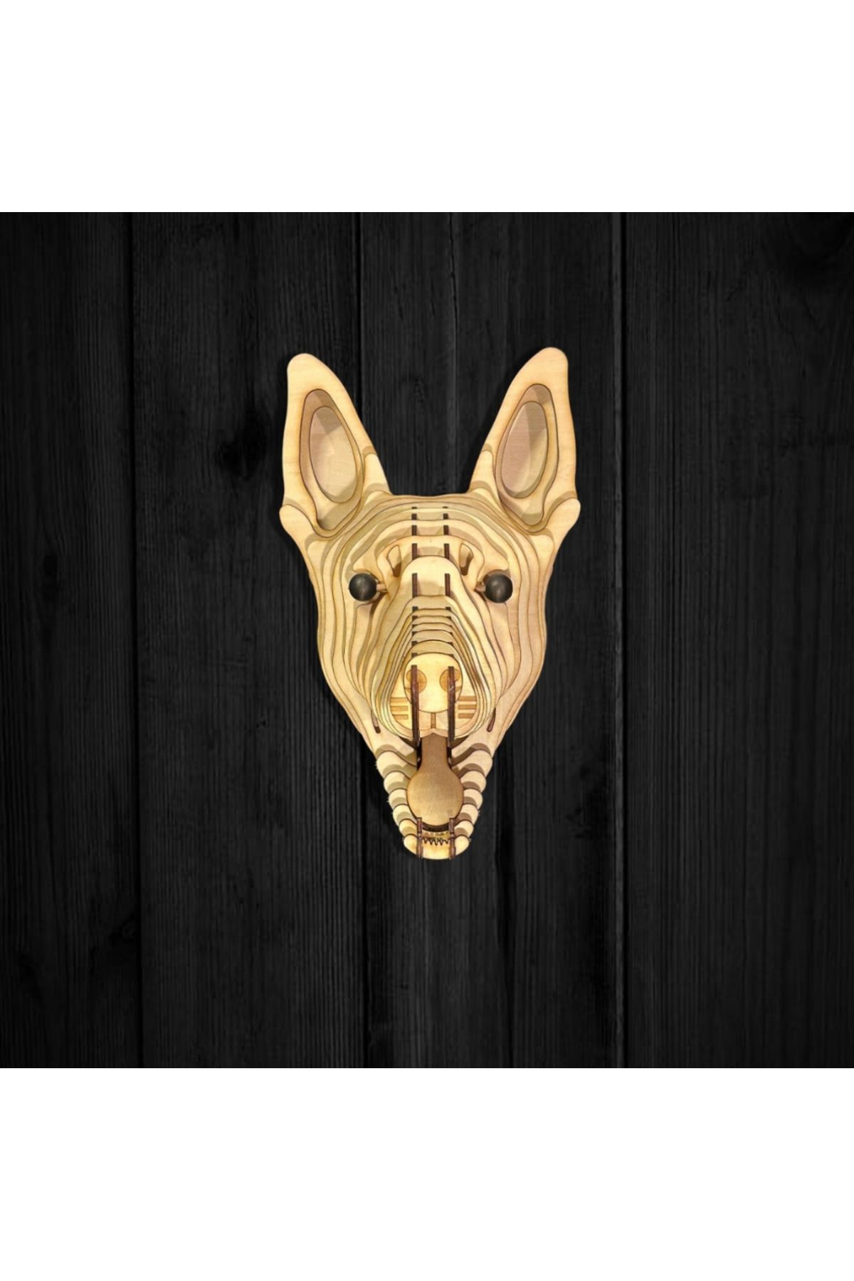 Kelb Köpek Kafası Doğal Ahşap Lazer Kesim Rustik Salon Aplik Duvar Dekoru 3D Tablo Pano (Peri LEDli)