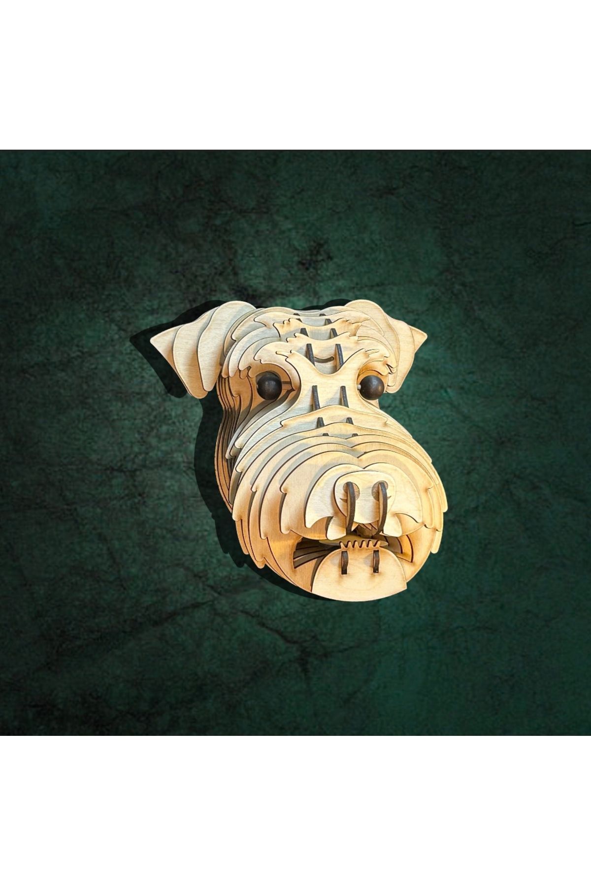 Kelb Köpek Kafası Doğal Ahşap Lazer Kesim Rustik Salon Aplik Duvar Dekoru 3D Tablo Pano (Peri LEDli)