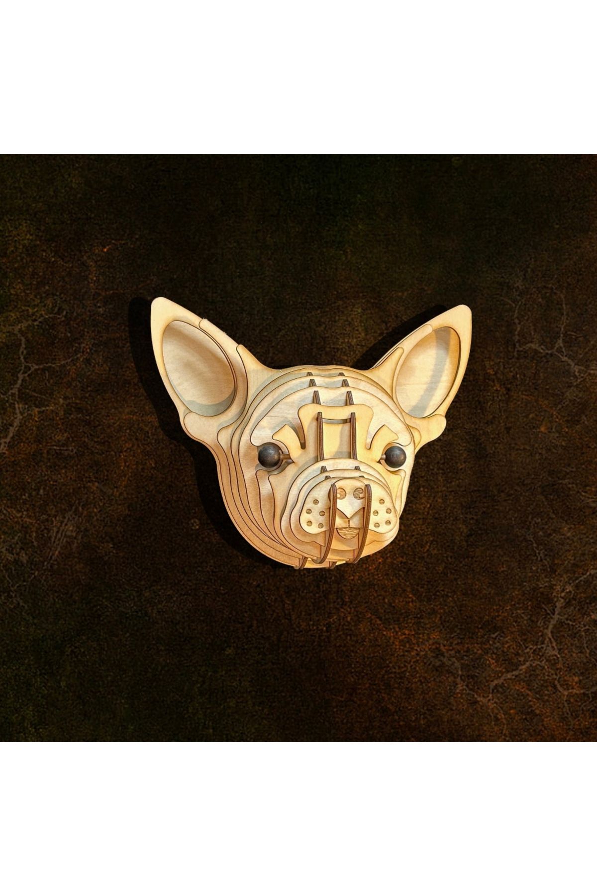 Kelb Köpek Kafası Doğal Ahşap Lazer Kesim Rustik Salon Aplik Duvar Dekoru 3D Tablo Pano (Peri LEDli)