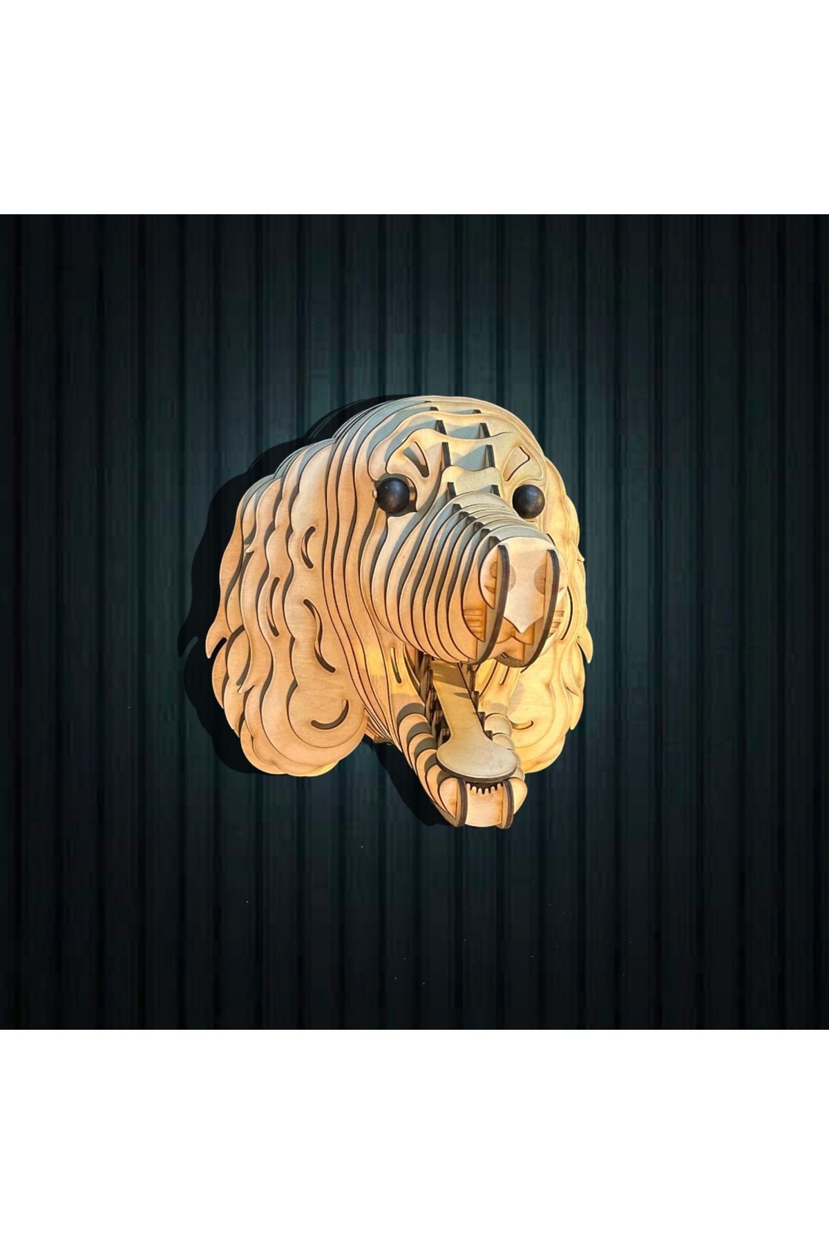 Kelb Köpek Kafası Doğal Ahşap Lazer Kesim Rustik Salon Aplik Duvar Dekoru 3D Tablo Pano (Peri LEDli)