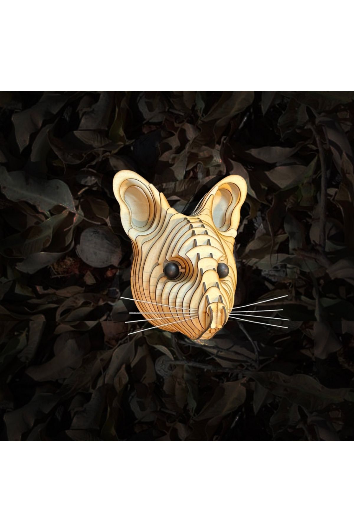 Kelb Köpek Kafası Doğal Ahşap Lazer Kesim Rustik Salon Aplik Duvar Dekoru 3D Tablo Pano (Peri LEDli)