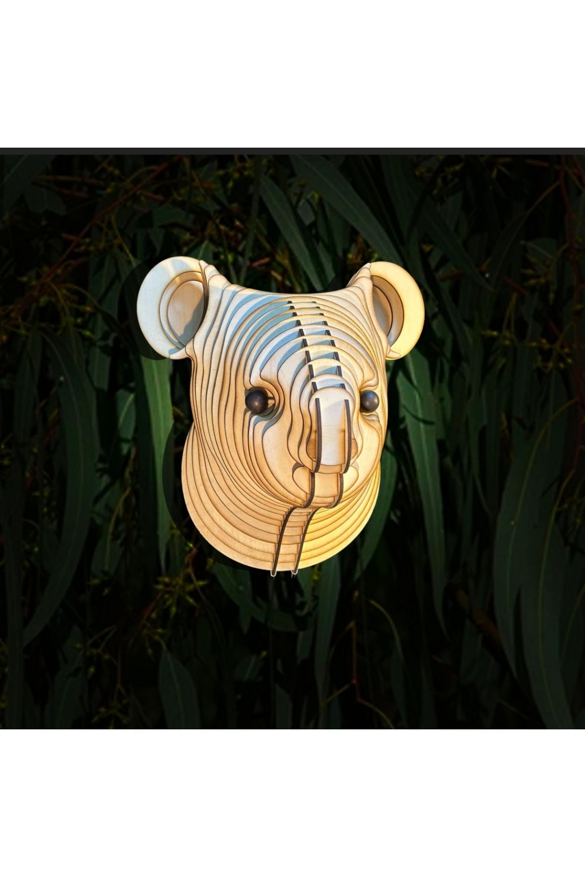Kelb Köpek Kafası Doğal Ahşap Lazer Kesim Rustik Salon Aplik Duvar Dekoru 3D Tablo Pano (Peri LEDli)