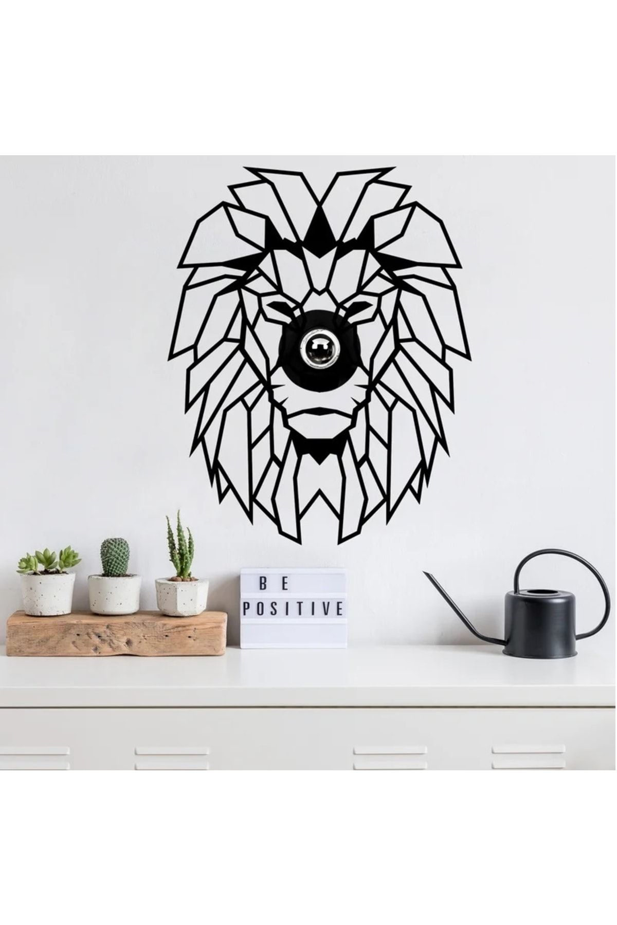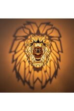 Lion Aslan Desenli Yansıtma Tasarımlı Doğal Ahşap Mdf Lazer Rustik Salon Aplik Duvar Dekoru