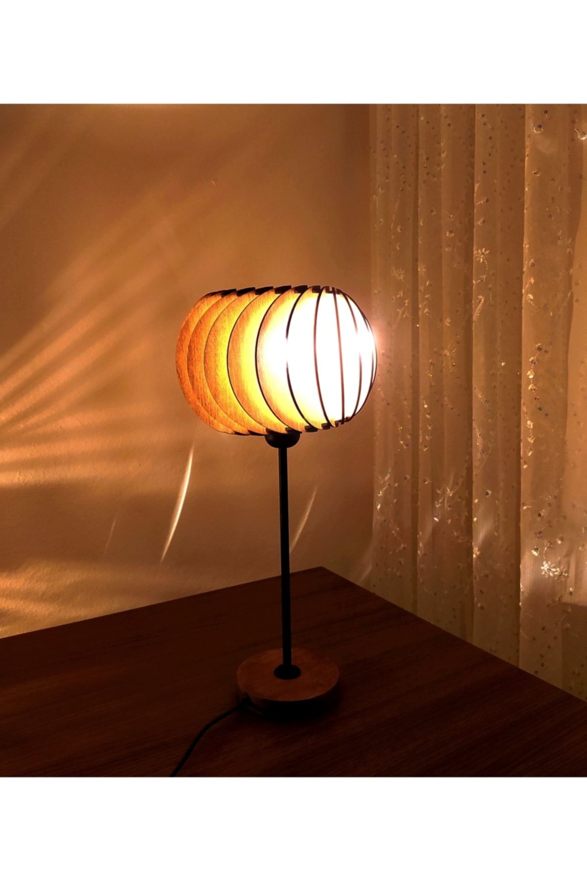 Salon Yatak Yemek Odası Için Şamdan Doğal Ahşap Mdf 3d Abajur – Masa / Gece Lamba