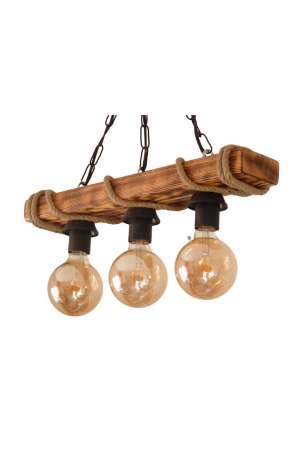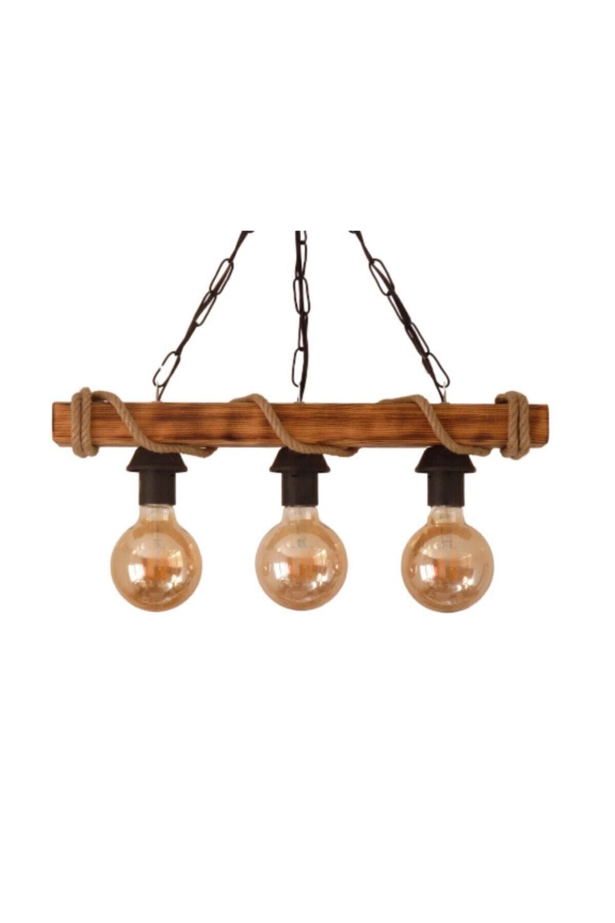Tasarım 3'lü Rustik Nigrum Halatlı Ahşap Avize