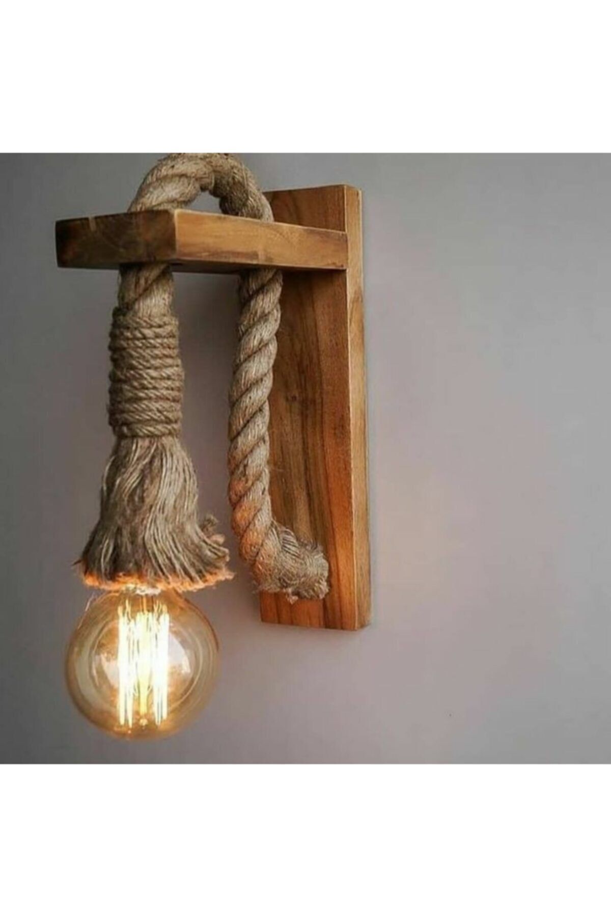 Tasarım Dekoratif Ahşap Halatlı Rustik Duvar Aplik Avize
