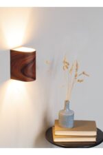 Yansıtma Tasarımlı Bombe Kenarlı Çift Yönlü Ahşap Salon Duvar Aplik Avize – Gu 10 Duy